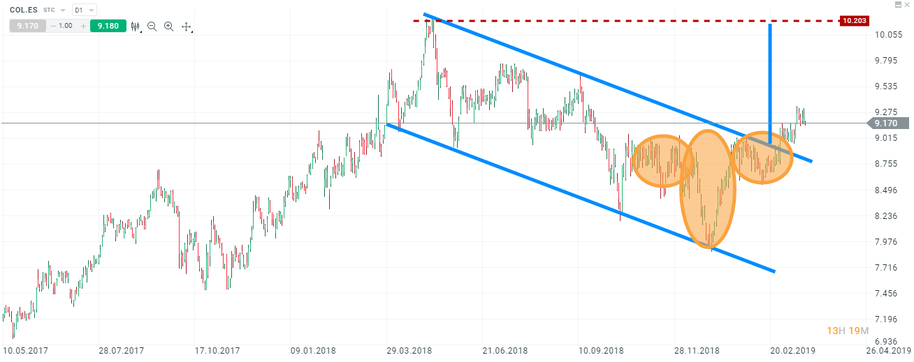 A nivel técnico el titulo comenzó un canal bajista a mediados del mes de mayo de 2018 dibujando una estructura de máximos y mínimos decrecientes. Como bien podemos observar en el gráfico la acción forma un patron de hombro cabeza hombro invertido, figura de tendencia alcista, donde marcamos una proyección de igual longitud a la cabeza dela figura invertida. Para poder repetir los máximos de 2018 marcamos como primer objetivo los 9,73 euros por acción.
