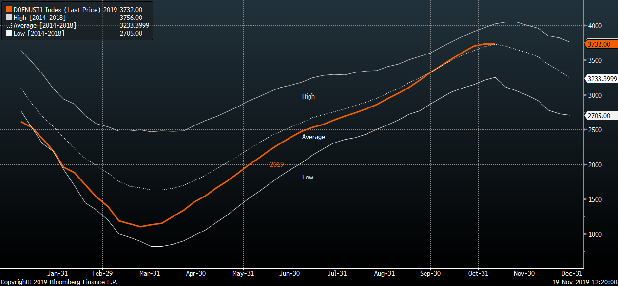 - El período de tiempo en que las existencias de gas generalmente aumentan en los Estados Unidos está llegando a su fin