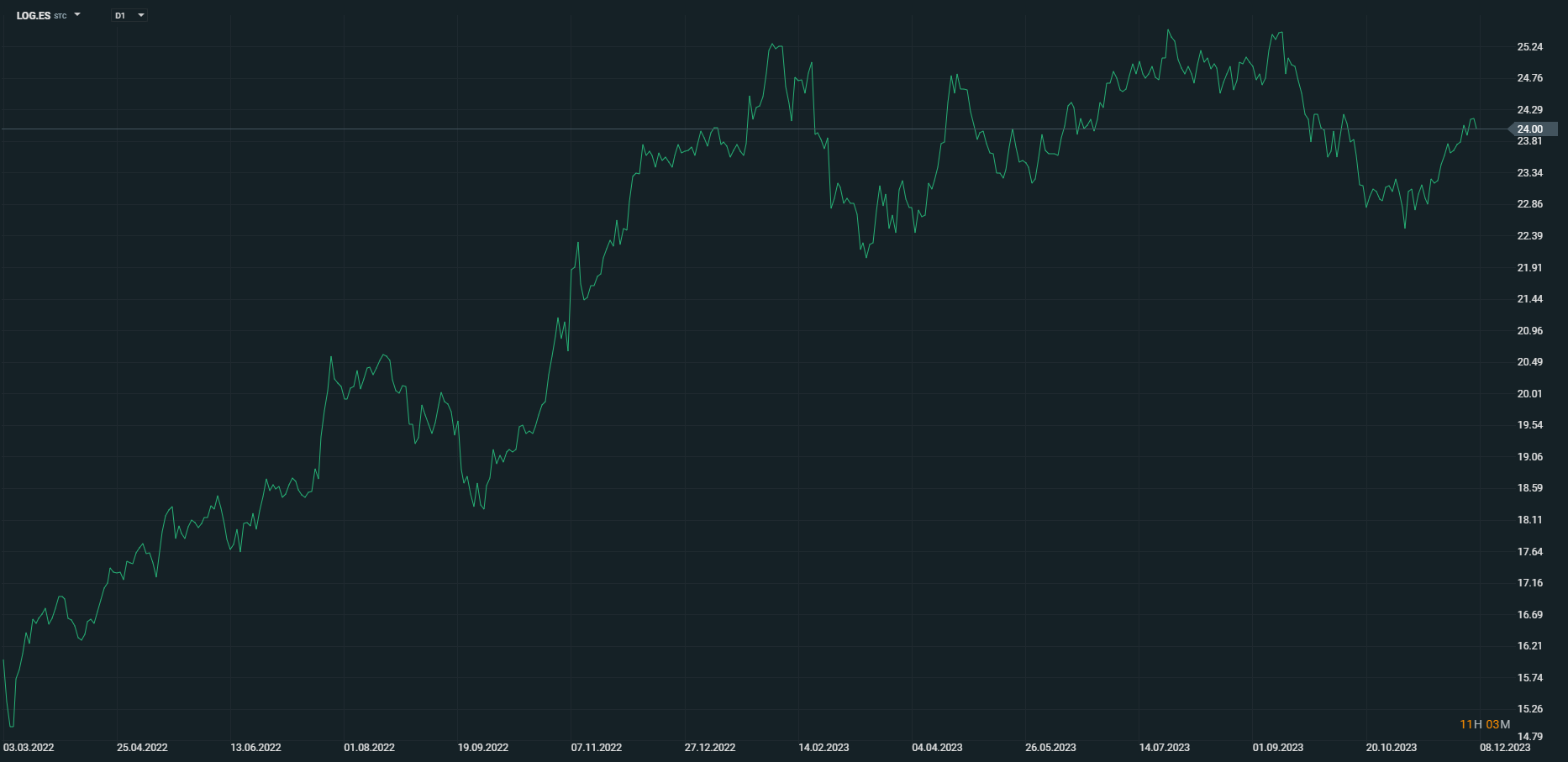 Logista tiene una capitalización bursátil de 3.186 millones de euros y en el periodo 2018-2022 consiguió una rentabilidad anualizada del 4,25%. En este 2023, apenas sube un 1%, pero ha tenido mucha volatilidad a lo largo del año.