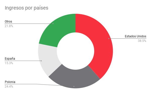 En cuanto a su distribución geográfica, vemos como tiene cierta diversificación, aunque la relevancia del país americano es notable. Esto podría hacer que si el país entra en una recesión, la compañía vea lastrados sus resultados.