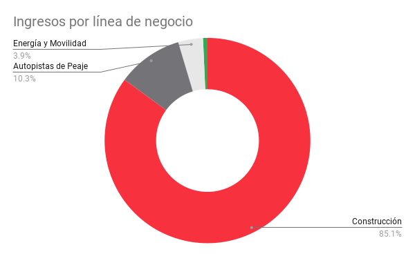 - Construcción, que representa el 85% de los ingresos y se centra en obras civiles.