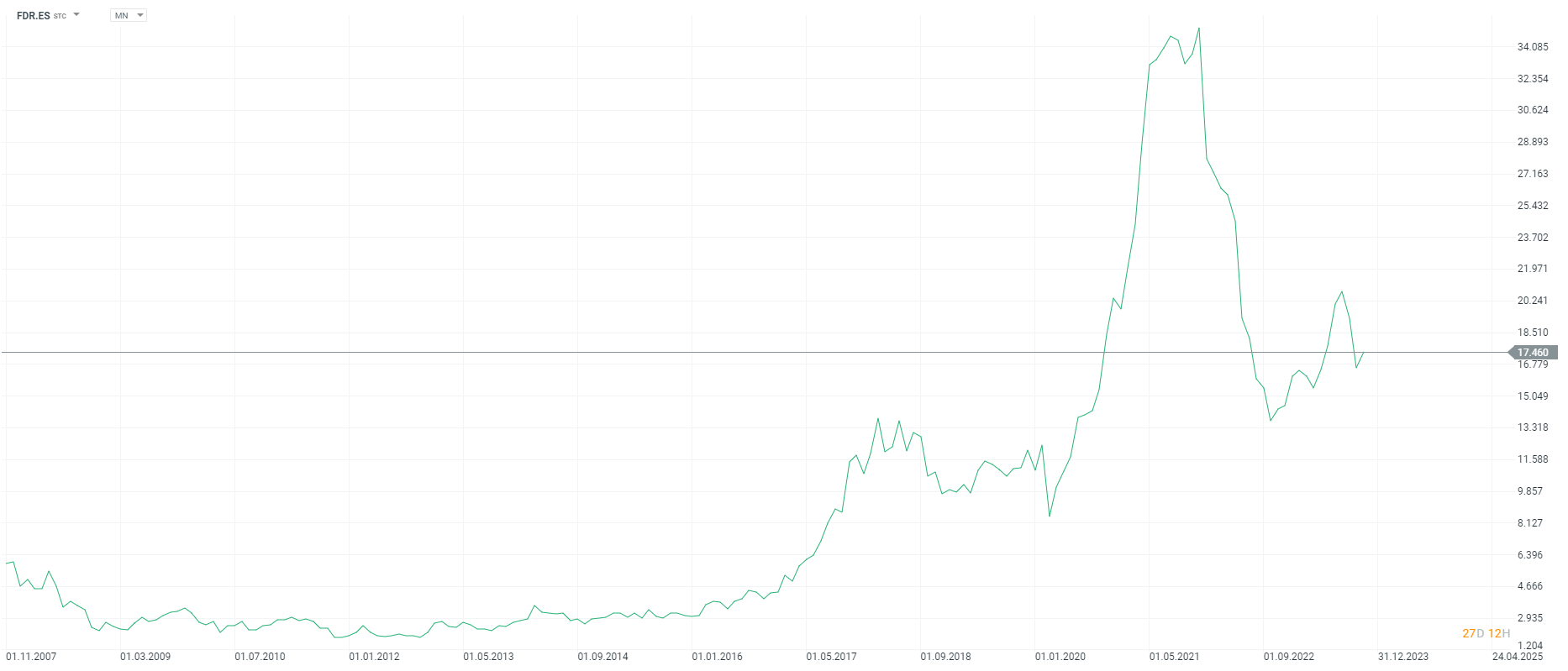 La empresa tiene una capitalización bursátil de unos 3.300 millones de euros y en lo que va de año de sube más de un 21%, pese a que desde agosto ha caído un -20%. En el periodo 2018-2022 la acción arrojó una rentabilidad anualizada del 4,2%.