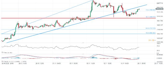 ETHEREUM detuvo la corrección cerca de 1.900 dólares, donde vemos el retroceso de Fibonacci de 38,2 de la onda ascendente de octubre de 2023, cuando los precios se establecieron alrededor de 1.500 dólares. El MACD todavía está lejos de "sobrecalentarse", además el RSI todavía deja "espacio" para aumentos por encima de $2,000, pero los precios ahora están nuevamente por debajo de la línea de tendencia alcista, lo que indica una posible debilidad inminente. Fuente: xStation5
