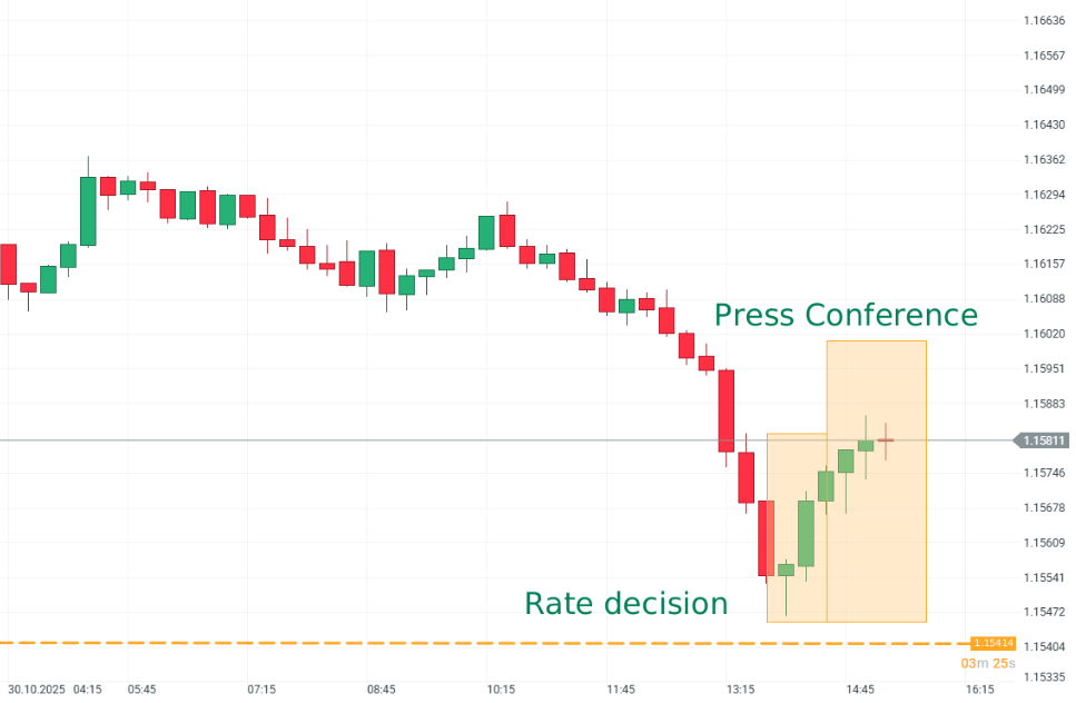 El euro recupera parte de sus caídas anteriores tras la decisión sobre los tipos de interés y la rueda de prensa posterior.