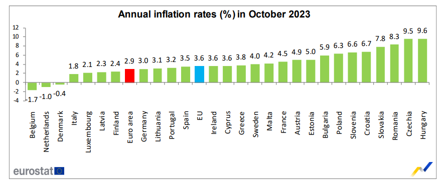 - El dato anual es del 2,9% para octubre, lo que supone una caída en comparación con el dato anterior de 4,3%.