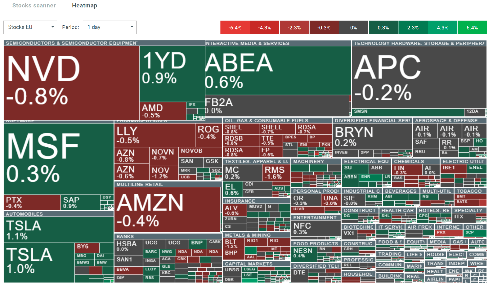 Los índices europeos registran ligeras ganancias durante la primera fase de la sesión del jueves: el Eurostoxx sube un 0,06 %, el DAX un 0,2 % y el CAC 40 un 0,07 %. Los inversores de todo el mundo centran hoy la atención en las noticias corporativas de Europa y los acontecimientos geopolíticos, dado el festivo en EE. UU. y la ausencia de actividad en Wall Street.