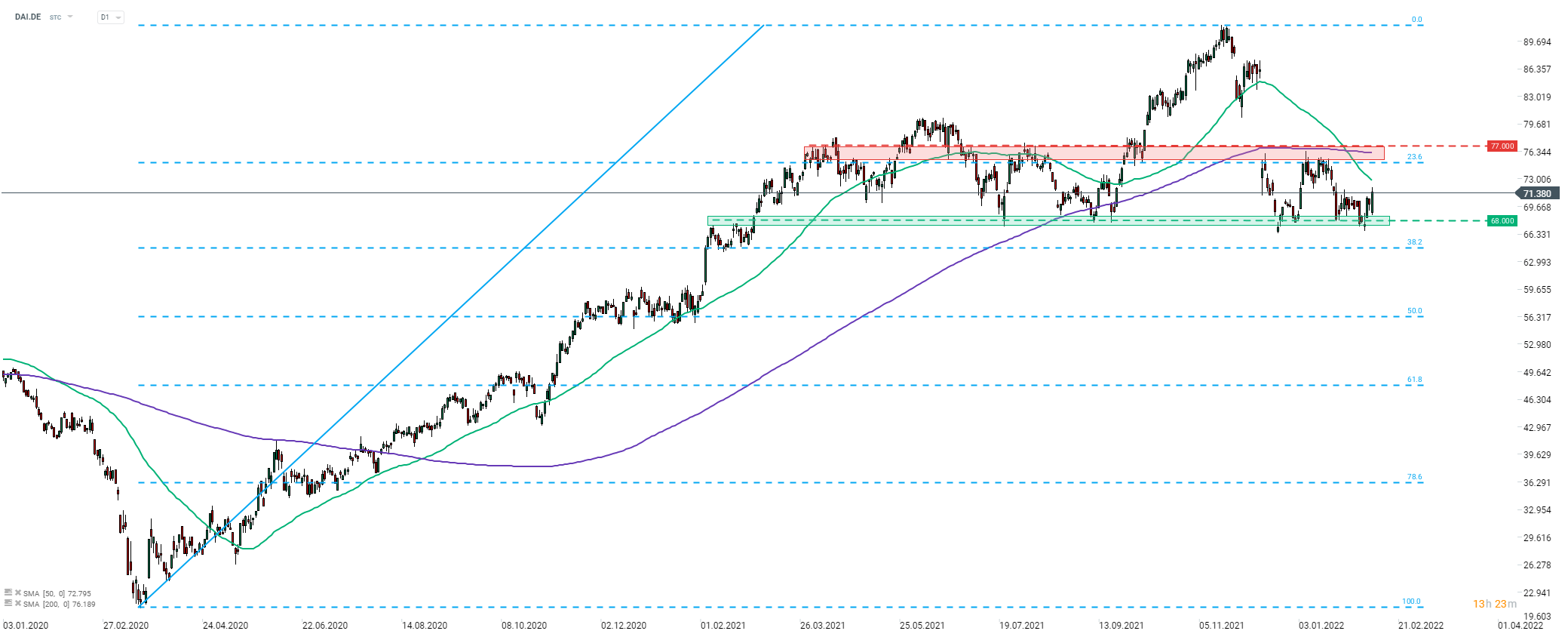 Las acciones de Mercedes-Benz Group (DAI.DE) inició la desión de hoy a la baja. Sin embargo, las pérdidas se recuperaron rápidamente y ahora las acciones cotizan ligeramente al alza en el día. El precio de las acciones rebotó en el límite inferior del rango de cotización a corto plazo a principios de esta semana y no se puede descartar un movimiento hacia el límite superior en torno a los 77,00 €. Fuente: xStation5
