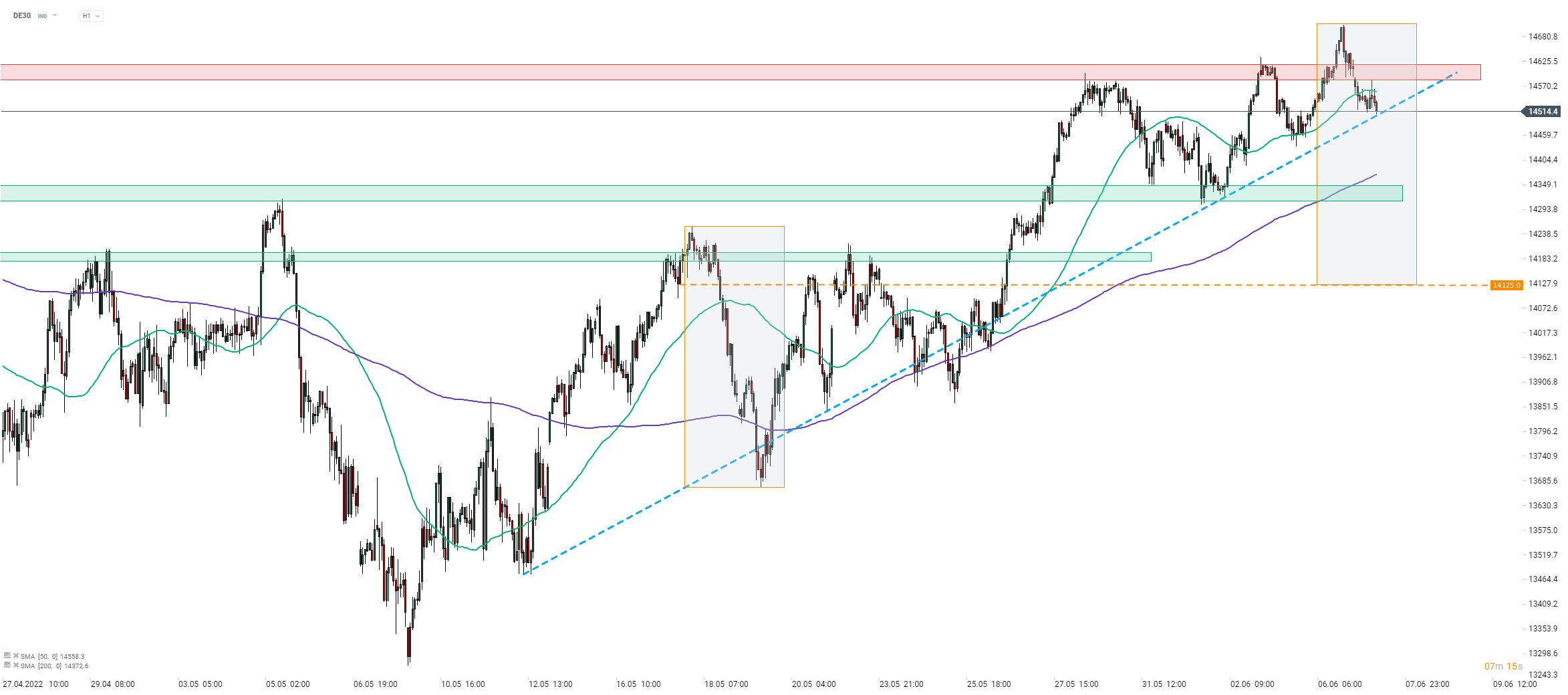 - DE30 prueba la línea de tendencia alcista a corto plazo