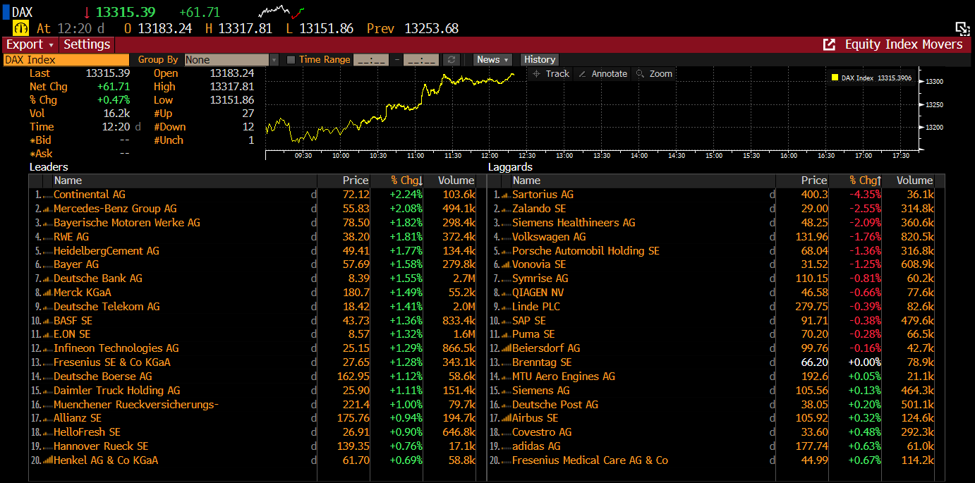 Los mayores cambios porcentuales de las empresas incluidas en el índice DAX. Fuente: Bloomberg