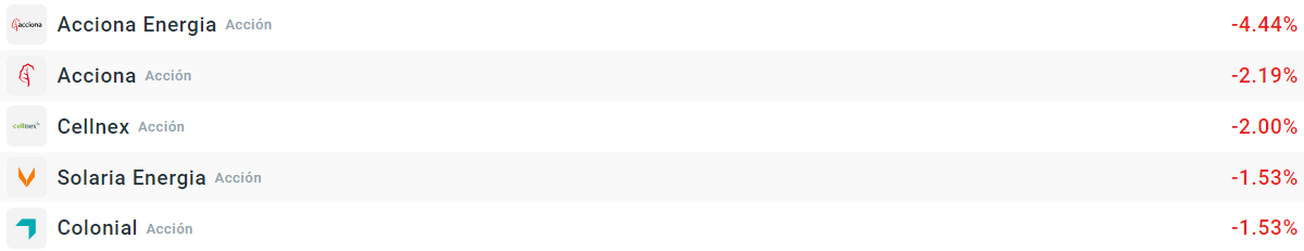 En la parte bajista, vemos a las renovables españolas. Las acciones de Acciona Energía caen con fuerza debido a que ha recibido una bajada de precio objetivo importante de Goldman Sachs, mientras que las acciones de Solaria achacan el aumento posiciones cortas de Qube Research hasta el 1,61% de sus acciones en circulación.