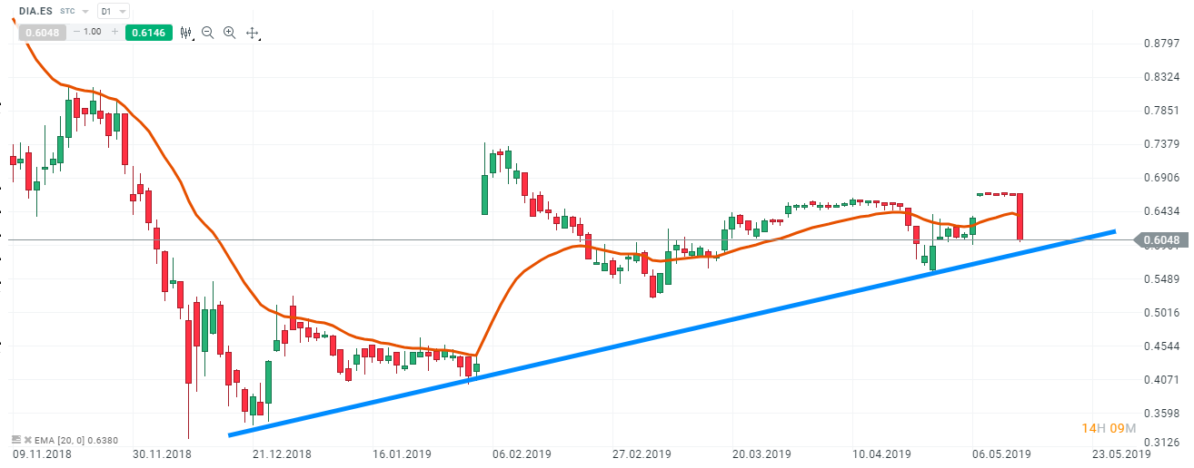 La compañía española que más noticias y rumores ha tenido en los últimos meses, ha publicado resultados dandonos a conocer que perdió en el primer trimestre del año 144,4 millones. El beneficio neto atribuible se compara con las pérdidas de 16,2 millones registradas hasta marzo de 2018, según las cuentas reexpresadas del informe de 2018, ha comunicado la compañía a la CNMV. La cadena de supermercados ha dado a conocer sus resultados del primer trimestre un día después de que terminara el plazo de aceptación de la opa que lanzó LetterOne sobre DIA. Las ventas brutas bajo enseña de la cadena de supermercados cayeron un 14%, hasta los 2.028 millones (avanzarían un 2,3% si se excluye el impacto de la divisa. Las ventas comparables (like-for-like) caen un 4,3% entre enero y marzo para el grupo DIA, comparado con la caída del 3,8% del mismo período de 2018. Esto muestra, según la compañía, "una tendencia negativa y progresiva deterioración durante el periodo". Las ventas netas caen un 7,2%, hasta los 1.664,6 millones. El rendimiento en las ventas "reflejó un efecto negativo del 13,3% derivado de las divisas debido a la depreciación del peso argentino y el real brasileño durante el período del 45,4 y el 6,8%, respectivamente", indica la cadena de supermercados.