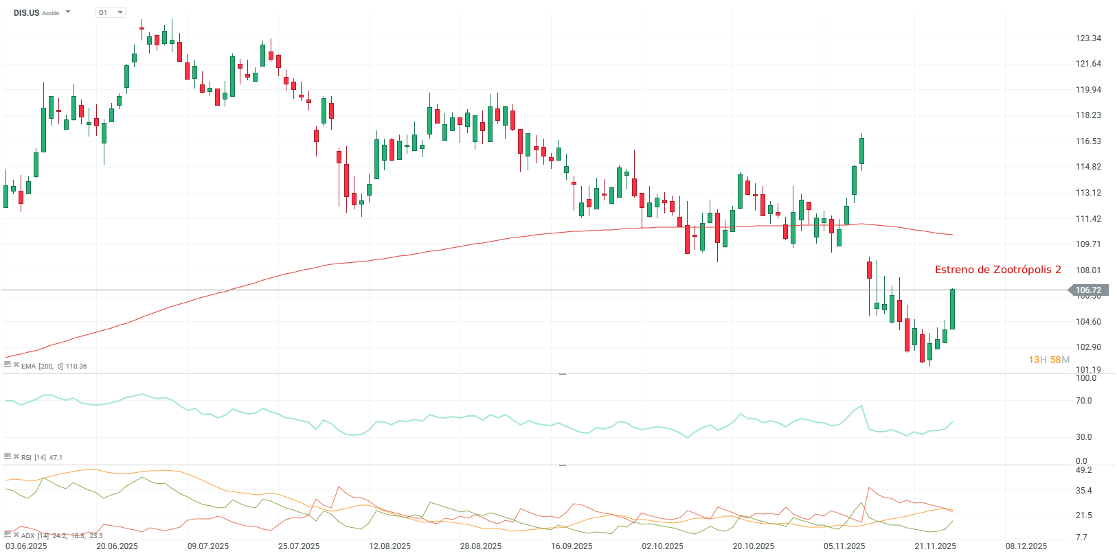 El estreno récord de Zootropolis 2 (556 millones en cinco días) impulsó un repunte inmediato en la acción de Disney, que subió un 2,2% y encadenó cuatro sesiones al alza tras tocar mínimos de seis meses.