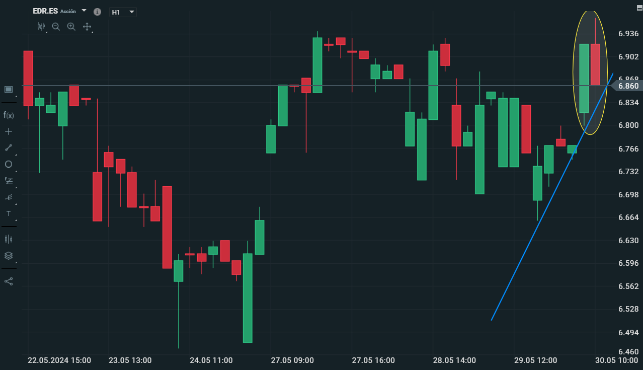 Edreams (Cotización con velas horarias)