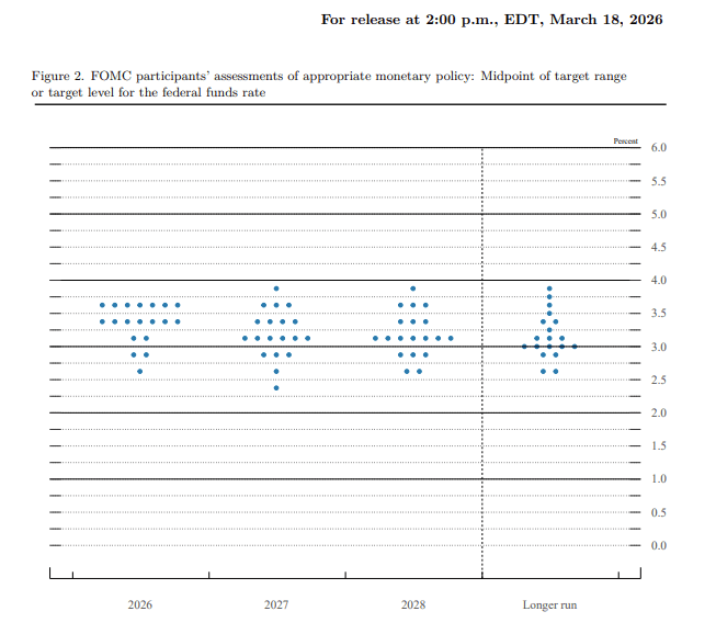Fuente: Federal Reserve, Summary of Economic Projections, FOMC Meeting March 18, 2026.