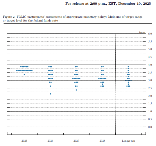 Fuente: Federal Reserve, Summary of Economic Projections, FOMC Meeting December 10, 2025.