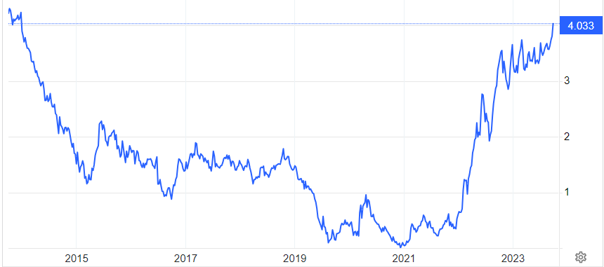 Rentabilidad del bono español a 10 años. Fuente: Tradingecomics.