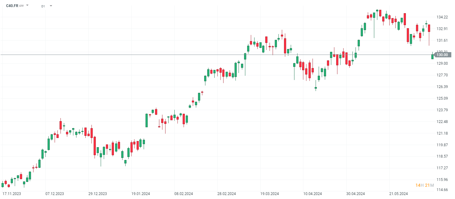En el siguiente gráfico podemos ver un ETF del selectivo francés (C40.FR), con la caída sufrida al inicio de esta sesión. Recuerda que puedes incluir diferentes ETFs en tu Plan de Inversión de XTB.