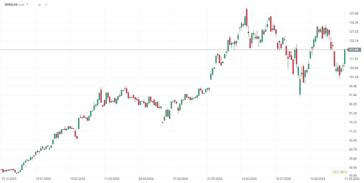 Tras una importante caída de más del 17% desde sus máximos del mes de agosto, las acciones de Nvidia (NVDA.US) consiguieron anotarse ayer una fuerte subida del 8% después de unas declaraciones de Jensen Huang, fundador y CEO de Nvidia. ¿Qué es lo que dijo?