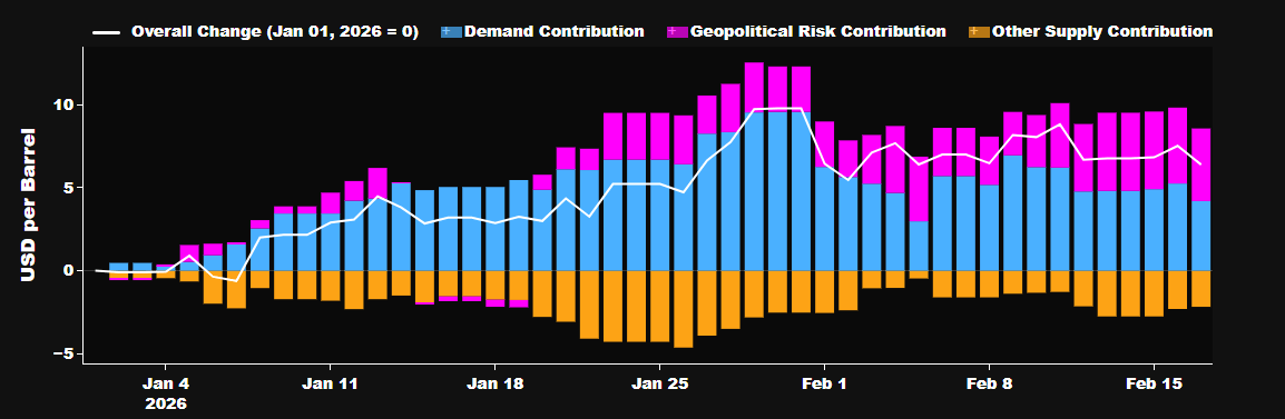 Los niveles actuales también están respaldados por la decisión de OPEP+ de aplazar aumentos de producción hasta finales del primer trimestre de 2026 (aunque el cartel ha insinuado un posible incremento a partir de abril).