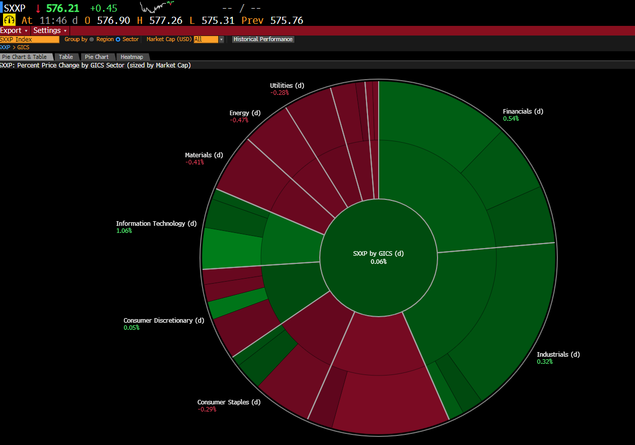 Los mercados europeos comienzan la semana con tono mixto, con el índice STOXX Europe 600 subiendo un 0,1% intradía.