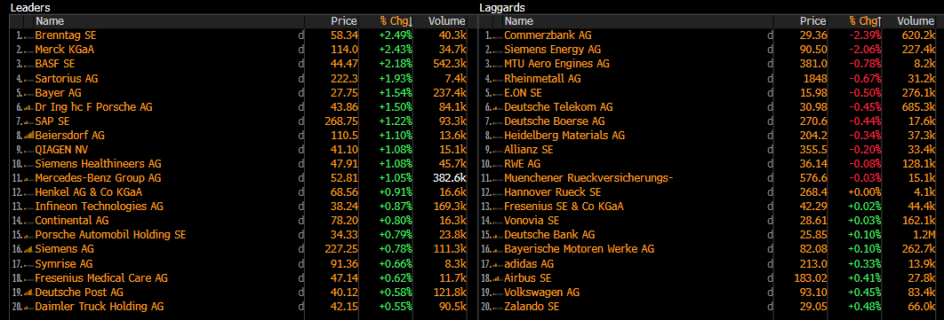 Según Bloomberg Finance LP, también hay cierta mejora en el sentimiento en torno a los fabricantes de automóviles alemanes, tras informes de los medios que sugieren que el lado estadounidense ha mostrado una mayor voluntad de hacer concesiones en las negociaciones arancelarias con Europa.