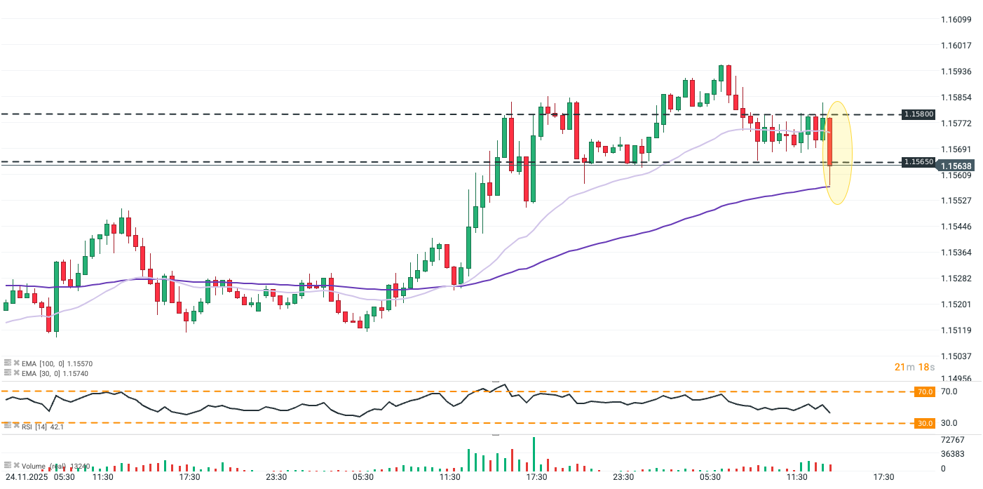 La inesperada caída de las solicitudes de subsidio por desempleo en EE. UU. por debajo del promedio de 4 semanas hizo que el EUR/USD volviera a caer por debajo del nivel clave de 1,158. El par se encuentra actualmente a la baja un 0,1% a pesar de las ganancias iniciales del 0,2%, aunque las ventas se han detenido en la media móvil exponencial (EMA) de 100 períodos en el intervalo M30.
