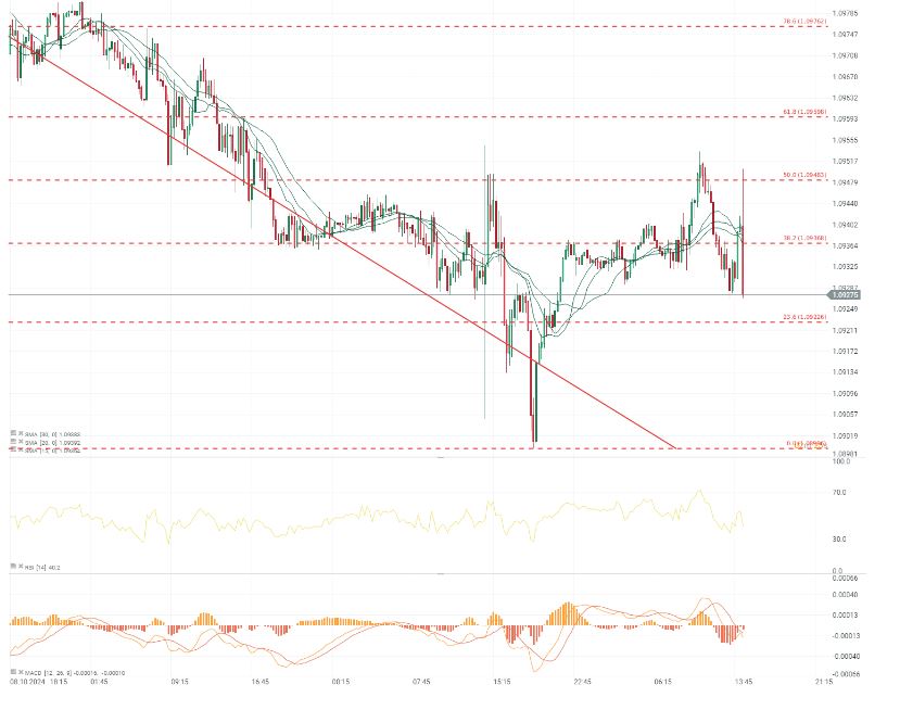 El índice de precios al productor (IPP) de EE. UU. se mantuvo estable en mes a mes en septiembre, por debajo del pronóstico de 0,1% y del 0,2% del mes anterior. El IPP interanual aumentó 1,8%, superando las expectativas de 1,6%, mientras que el IPP básico aumentó 0,2% mes a mes y 2,8% año tras año. Los contribuyentes notables a las cifras de septiembre incluyeron un aumento del 1% en los costos de los alimentos (el más grande desde febrero) y un aumento del 3% en los precios de los servicios de depósito. Estos datos sugieren una desaceleración en los aumentos de los precios al productor, lo que potencialmente podría conducir a una inflación de precios al consumidor más lenta e influir en las decisiones de política monetaria de la Reserva Federal. El IPP menor de lo esperado podría interpretarse como bajista para el dólar estadounidense y podría reducir la probabilidad de aumentos agresivos de las tasas de interés. Sin embargo, este punto de datos debe considerarse junto con otros indicadores económicos para medir la salud general de la economía estadounidense. Actualmente, hay un 87,9 % de probabilidad de un recorte de tasas de 25 puntos básicos, frente al 83,3 % de ayer.