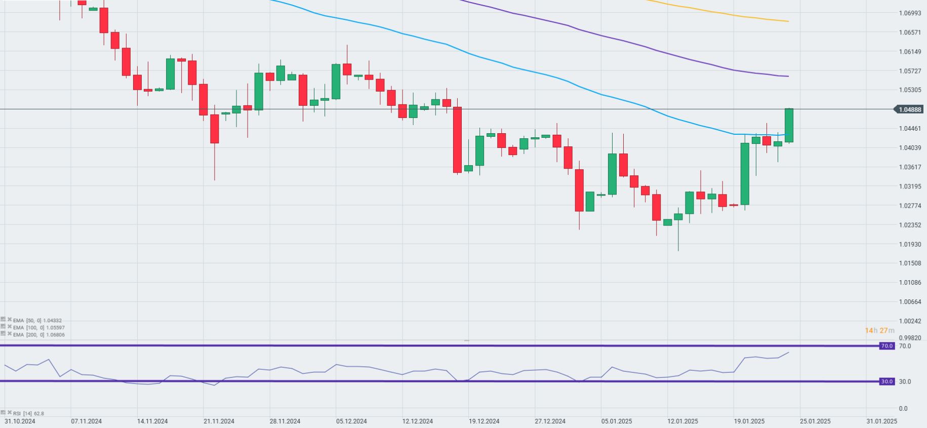 El movimiento al alza del EUR/USD refleja la confianza renovada en la economía europea, impulsada por los datos positivos provenientes de Alemania. Fuente: XTB