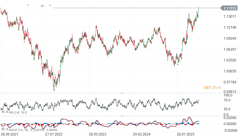 El par EUR/USD registra una subida cercana al 0,6 % en la jornada de hoy, mientras que el rendimiento de los bonos del Tesoro estadounidense a 10 años cae 3,5 puntos básicos, situándose por debajo del 4,26 %.
