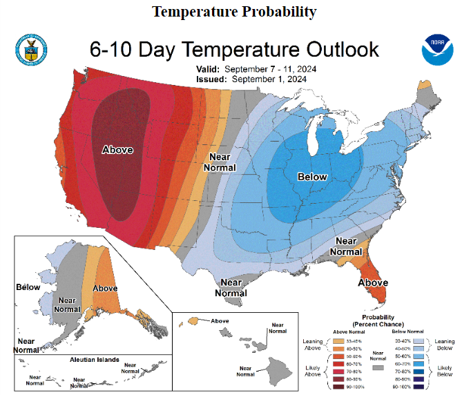 Las previsiones meteorológicas para los próximos 6-10 días muestran temperaturas más frías de lo normal. Fuente: NOAA