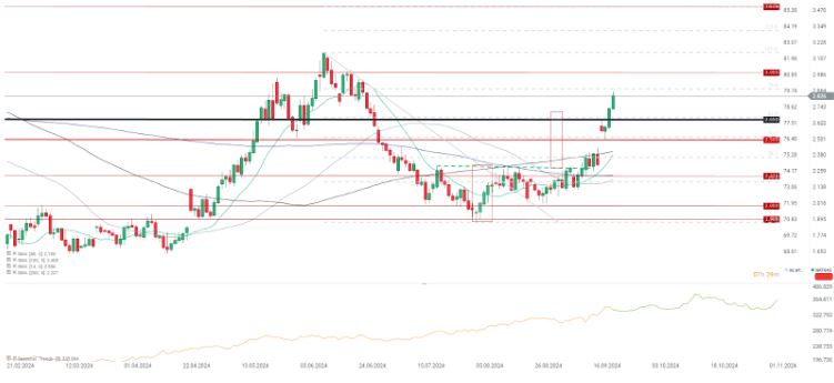 El precio del gas continúa su fuerte ascenso después del rollover de septiembre. El año pasado, en el mismo período después de este, se registró un aumento de más del 20% antes de una corrección en la segunda y tercera semanas de octubre. Fuente: xStation5