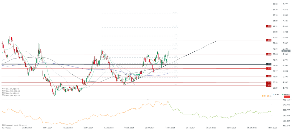 Con precios que subieron más del 5% hoy, alcanzando los $3,10/MMBTU, el nivel más alto desde junio, y con el repunte programado para después de la sesión de mañana, un precio sostenido en los niveles actuales podría hacer que los precios posteriores al repunte abran cerca de los 3,30$ por MMBTU, el nivel más alto desde enero. Si bien la estacionalidad sugiere que las caídas deberían comenzar esta semana, el empeoramiento de las previsiones meteorológicas podría impulsar los precios aún más hacia el rango de 3,50-4,00$ por MMBTU.
