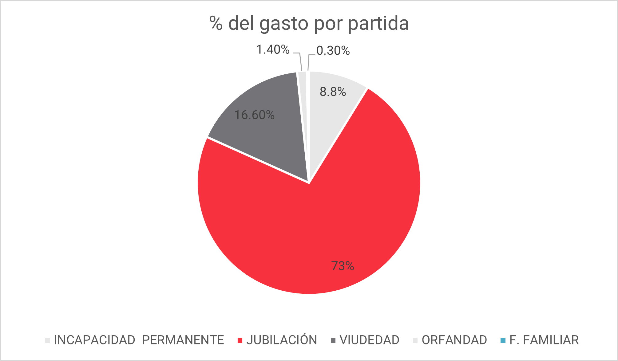 La pensión por jubilación representa el 73% del gasto en pensiones, seguido por el 8,8% que representa la pensión por incapacidad permanente.