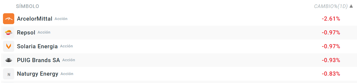 Las acciones de ArcelorMittal son las que más caen dentro de la negatividad del Ibex 35. El motivo parece ser la posible venta de su división en Sudáfrica por unos 491 millones de dólares. También hay ciertos miedos de Estados Unidos incluya más productos que usan acero en su lista de "derivados del acero" sujetos a aranceles, mientras que el gobierno canadiénse ha afirmado que dará apoyo financiero a un operador local. Esto hace que el panorama en el sector sea en general más complicado. Por su parte, las acciones de Repsol siguen achacando la resaca de las fuertes caídas de ayer del petróleo por los miedos a nuevos incrementos de la producción en noviembre por parte de la OPEP+. En el día de hoy, las caídas del crudo se han suavizado.