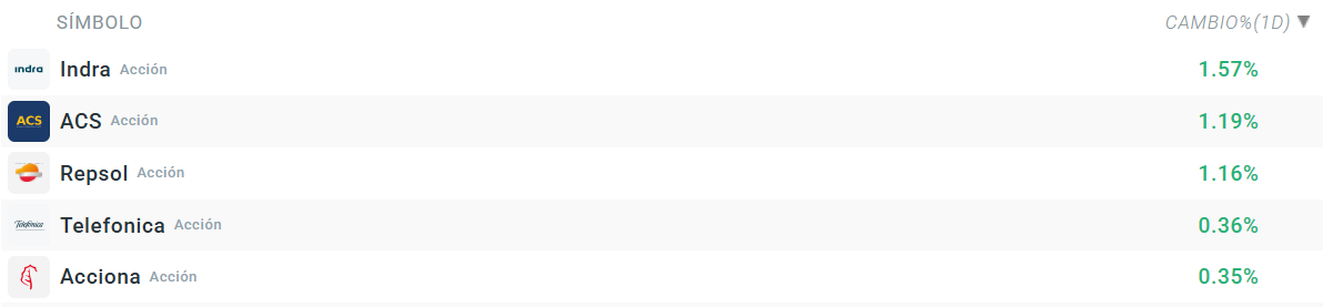Las acciones de Indra lideran al selectivo español y están rebotando después de la negatividad que ayer rodeó al sector por los aparentes avances en la paz de Ucrania. De hecho, la compañía acumulaba una caída de más del 5% en los últimos dos días. ACS también está subiendo hoy y es que la compañía sufrió un duro castigo el viernes pasado por su relación con los centros de datos, por lo que ante la mejora del sentimiento sobre el sector también beneficia a la española.