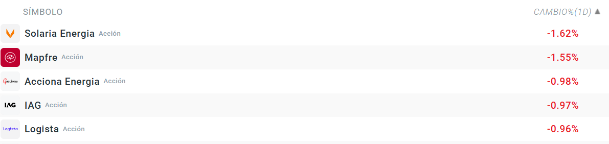 Las acciones de Solaria vuelven a copar la parte baja del Ibex 35, de nuevo por un recorte de recomendación por parte de una casa de análisis, en este caso por Berenberg. La casa de análisis ha incrementado el precio objetivo desde 12,5€ hasta 19€, pero ha rebajado su calificación hasta "mantener". Lo mismo ocurrió ayer con RBC, que subió el precio objetivo de Solaria pero recortó recomendación. Esto muestra ya cierto vértigo por las subidas acumuladas por la compañía después del rally de este año, que ha estado impulsado por el cierre de cortos, mejora en las cuentas y un ambicioso plan de inversiones con objetivos también atractivos para el inversor. Las acciones de Mapfre están cayendo más de un 1% y la compañía estaría planeando refinanciar parte de su deuda. Esta es otra compañía que ha experimentado una mejora de sus cuentas, pero está por ver si el negocio de vida-ahorro aguantará el ritmo con unos tipos de interés más bajos.
