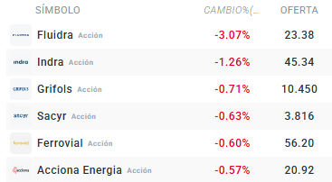 Fluidra es el farolillo rojo del selectivo debido a que empieza el mes descontando su próximo dividendo, el cual asciende hasta los 30 céntimos por acción y será abonado pasado mañana. La bajada de Fluidra (3,07%) supera su rentabilidad por dividendo (1,2%), por lo que la corrección general del mercado también está impactando en la empresa española de piscinas, más allá de estar descontando la retribución al accionista de este miércoles. Indra retrocede por una mayor proximidad al acuerdo de paz en Ucrania mientras que Ferrovial corrige 6 décimas tras establecer los 55,15 euros como precio de referencia de sus acciones para los bonos convertibles no dilusivos con liquidación en efectivo.