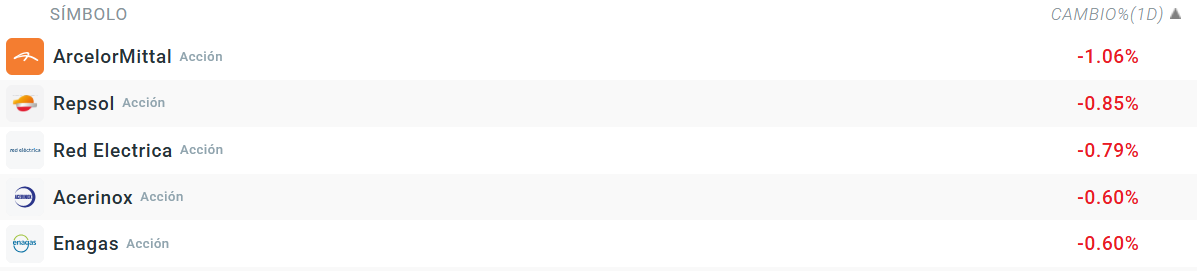 Las acciones de Arcelor están bajando algo más del 1%, eliminando parte de las ganancias de ayer tras las noticias sobre el posible arancel europeo al acero. Además, la compañía emitió bonos por valor de 650 millones de euros. Repsol también está cayendo en la jornada de hoy, con los precios del Brent ya en los 65$ el barril. Acerinox por su parte también está perdiendo algo de las subidas de ayer, aunque en general los descensos son moderados.