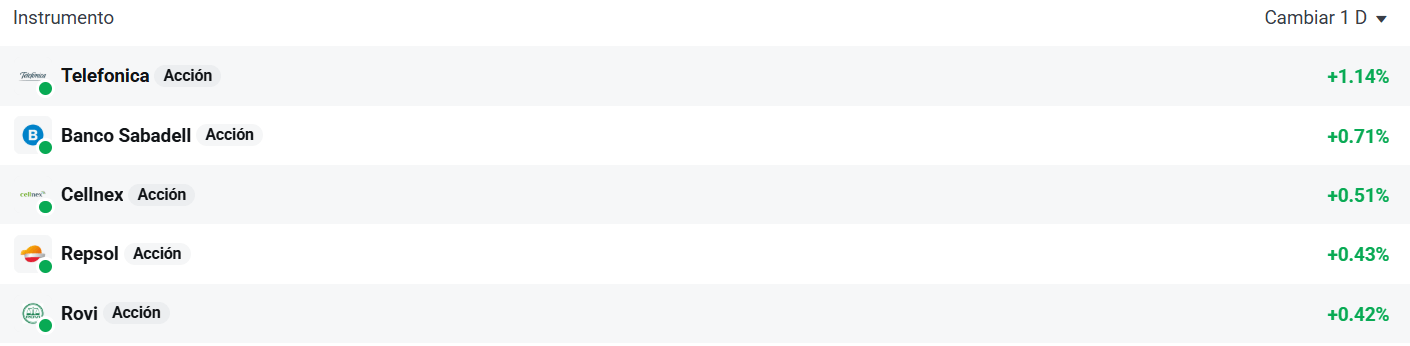 Los movimientos de la parte alta de la tabla del Ibex 35 son moderados. Telefónica lidera la sesión, aunque no hay grandes noticias destacables en el día de hoy. En cualquier caso, varios medios apuntan a que la Comisión Europea estaría preparando relajar los criterios de fusiones dentro de Europa. Esto es algo que las compañías llevan pidiendo tiempo y que se ve necesario para competir con los gigantes de otras partes del mundo, como Estados Unidos. Además, esto permitiría mejorar las economías de escala, lo que tendría un impacto positivo en sus márgenes.