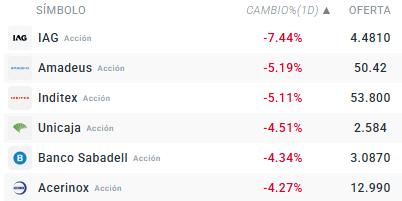 En total, el Ibex 35 pierde alrededor de un 3% en esta apertura.