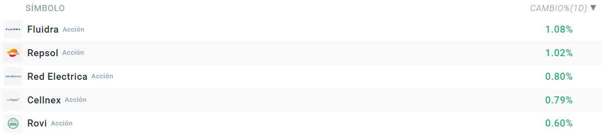 La parte alta del Ibex 35 está dominada por Fluidra, que se anota una subida de algo más del 1%. La compañía también tiene una importante exposición a Estados Unidos, pero ayer no fue demasiado castigada. Repsol por su parte consigue repuntar aunque los precios del petróleo estén corrigiendo un 0,8%. Redeia fue de las pocas empresas que ayer resistía las caídas y hoy continúa al alza.