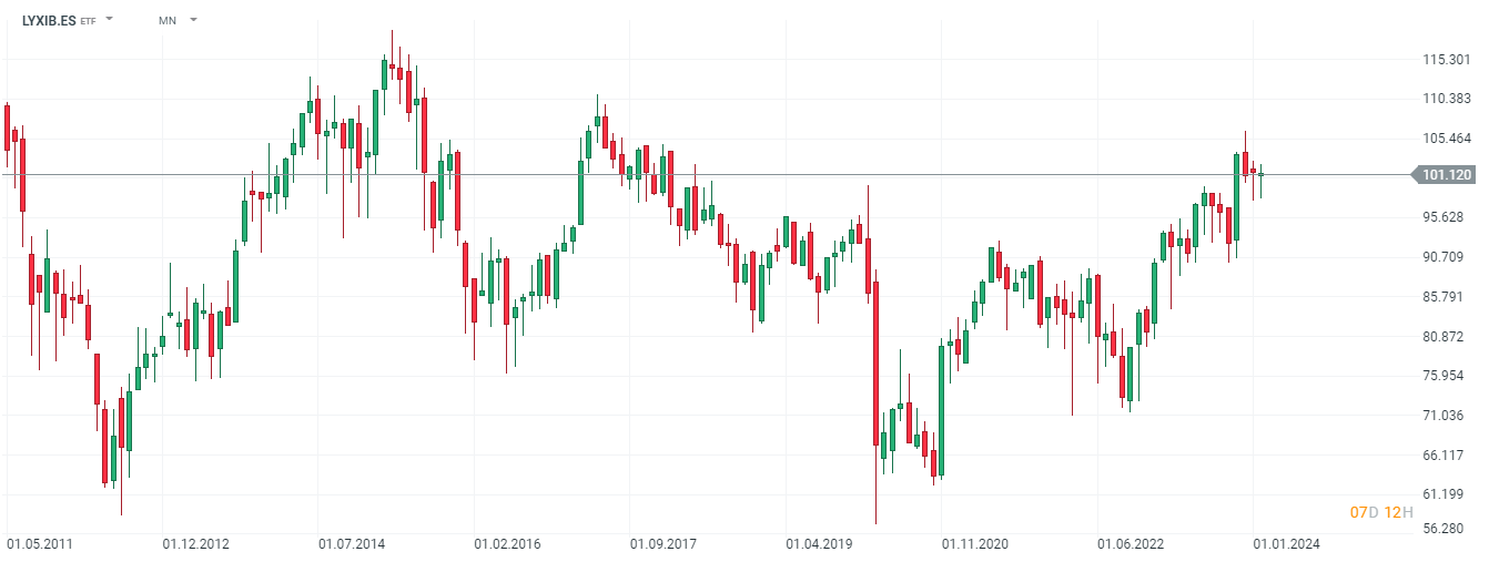 Te mostramos un ejemplo de un ETF que replica el comportamiento del Ibex 35 y que además de encontrarlo en nuestra plataforma puedes incluirlo en tu Plan de Inversión. Puedes encontrar su descripción aquí (LYXIB.ES)
