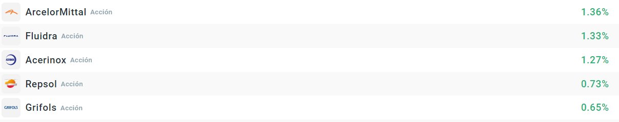 La parte alcista del Ibex35 está protagonizada por ArcelorMittal, arrastrada por los buenos datos del PIB del tercer trimestre de China, al igual que por los datos de producción industrial. Ambos indicadores han estado por encima de las expectativas en una décima y en 8 décimas, respectivamente. Esto lleva a pensar a los inversores que la demanda de acero podría crecer, lo que impacta de manera positiva a ArcelorMittal. También lo hacen bien las acciones de Fluidra y Acerinox.