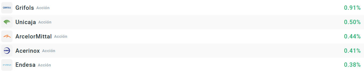 Las subidas del Ibex35 están lideradas por Grifols, que reportará sus resultados el jueves. Unicaja y las industriales ArcelorMittal y Acerinox también empiezan bien la mañana, aunque no tenemos ningún gran movimiento destacado.