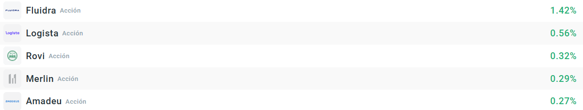 Las acciones de Fluidra son las más alcistas del selectivo español, con subidas superiores al 1%. La compañía se podría beneficiar de la aceleración del mercado inmobiliario americano, dado que esto puede llevar a aun aumento de demanda de piscinas. Logista y Rovi también suben, pero con alzas más moderadas.