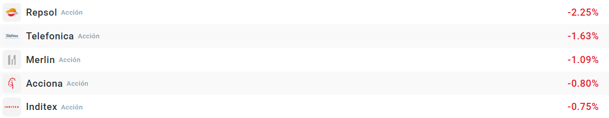 Las acciones de Repsol caen, debido a la caída de producción de petróleo del cuarto trimestre del año pasado, que le deja en una caída en el 2024 con respecto al año anterior. Telefónica o Merlin también corrigen, aunque hay que señalar que la socimi fue una de las más alcistas de ayer y esto podría ser una simple toma de beneficios.