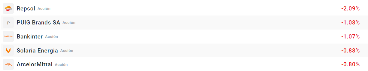 Las acciones de Repsol caen más de un 2% debido a las caídas de los precios del petróleo. El precio del crudo cae después de que algunas fuentes indicaran que Israel estaría dispuesto a atacar instalaciones militares de Irán, pero no petroleras. Por su parte, las acciones de Puig siguen cayendo, aunque podríamos ver movimientos debido a la presentación de resultados de otras compañías del sector del lujo.