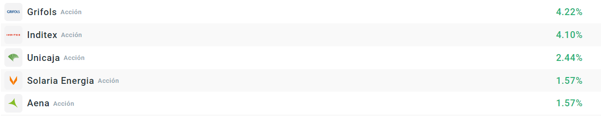 Por la parte alcista, las acciones de Grifols e Inditex lideran la sesión. En el caso de Grifols, la empresa ha aumentado la demanda contra Gotham, mientras que por otro lado sus accionistas moinoritarios se organizan para exigir un precio justo en la OPA de Brookfield. Por su parte, Inditex ha presentado unos sólidos resultados financieros.