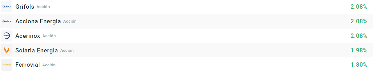 La parte alta del Ibex35 está dividida en tres compañías, como son Grifols, Acciona Energía y Acerinox. Las subidas son de alrededor del 2% y en el caso de Grifols podríamos achacarlo a que la empresa hará un ejercicio de transparencia. El 26 de febrero reportará sus resultados y el 27 celebrará su día para el inversor. En el caso de Acerinox, el mercado ha tomado como positivas las palabra de Trump sobre los aranceles al acero y el aluminio, que podrían reducir las importaciones chinas.