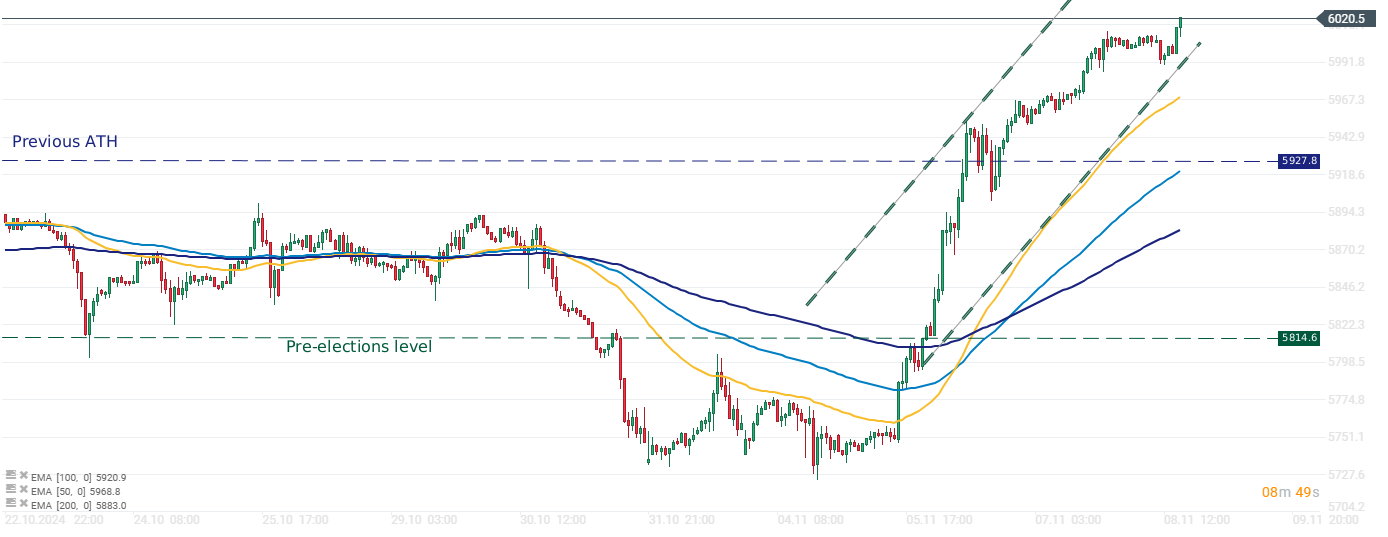 El contrato del índice S&P 500 ha subido más de un 3,5% desde la victoria electoral de Trump. Fuente: xStation